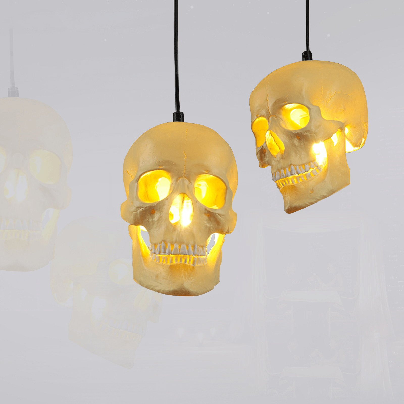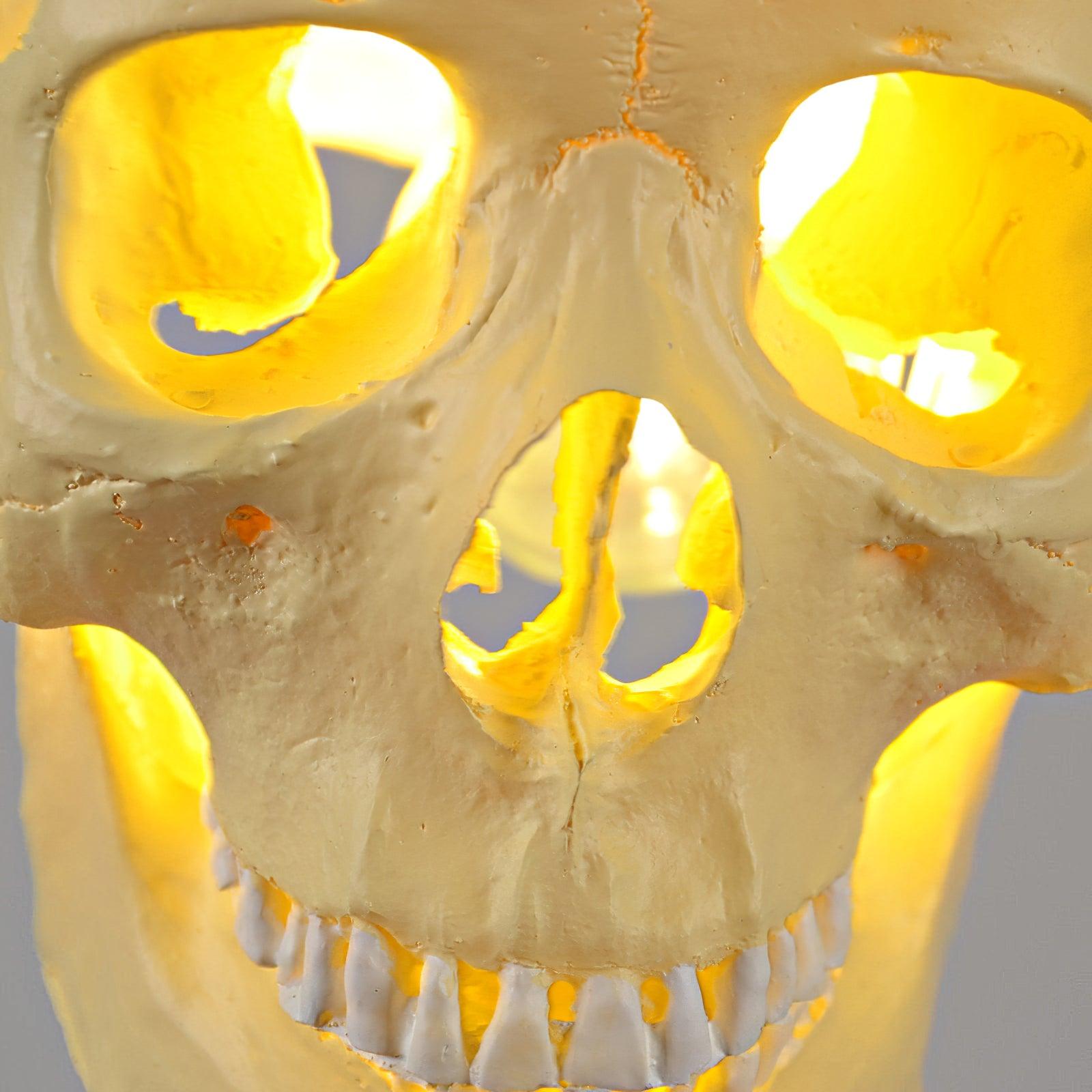 Crafted with meticulous attention to detail, the Skull Pendant Light features a seamless fusion of metal and resin materials. The metal add an element of elegance, beige the resin creates a stunning visual contrast with its milky ivory shade. This unique combination results in a truly captivating lighting fixture that effortlessly complements any interior decor style.