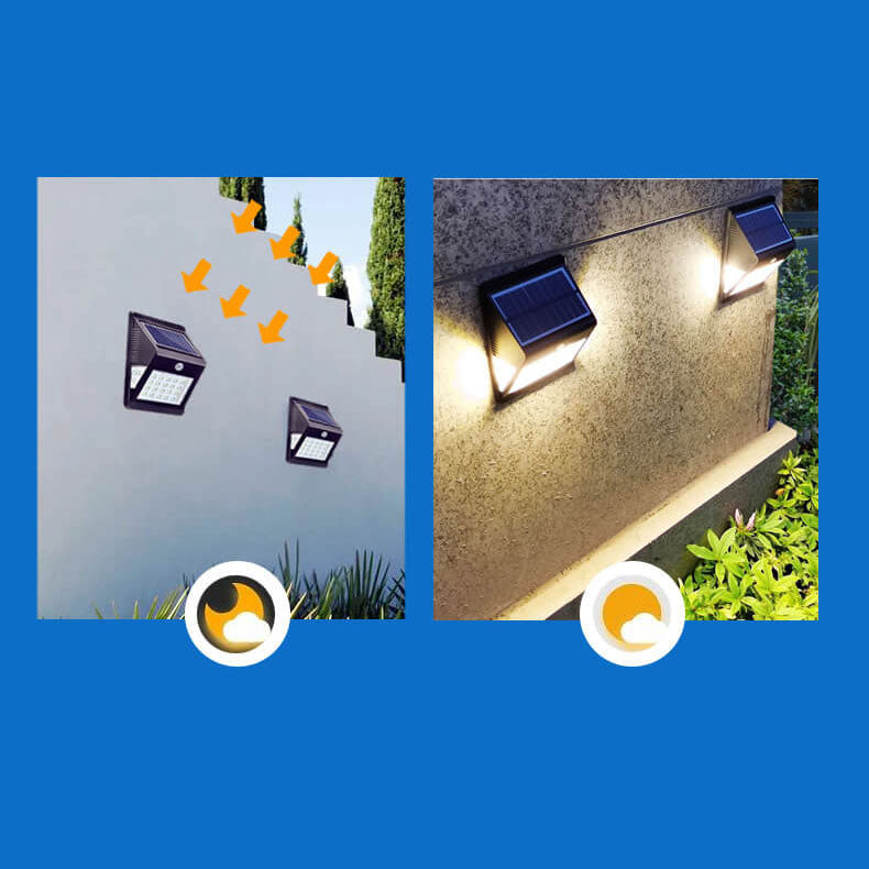 Solar Sensor Three Side LED Outdoor Wall Sconce Lamp