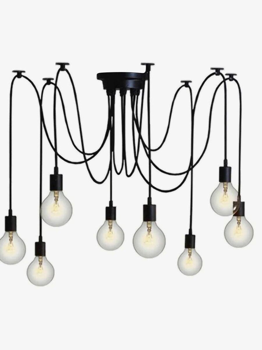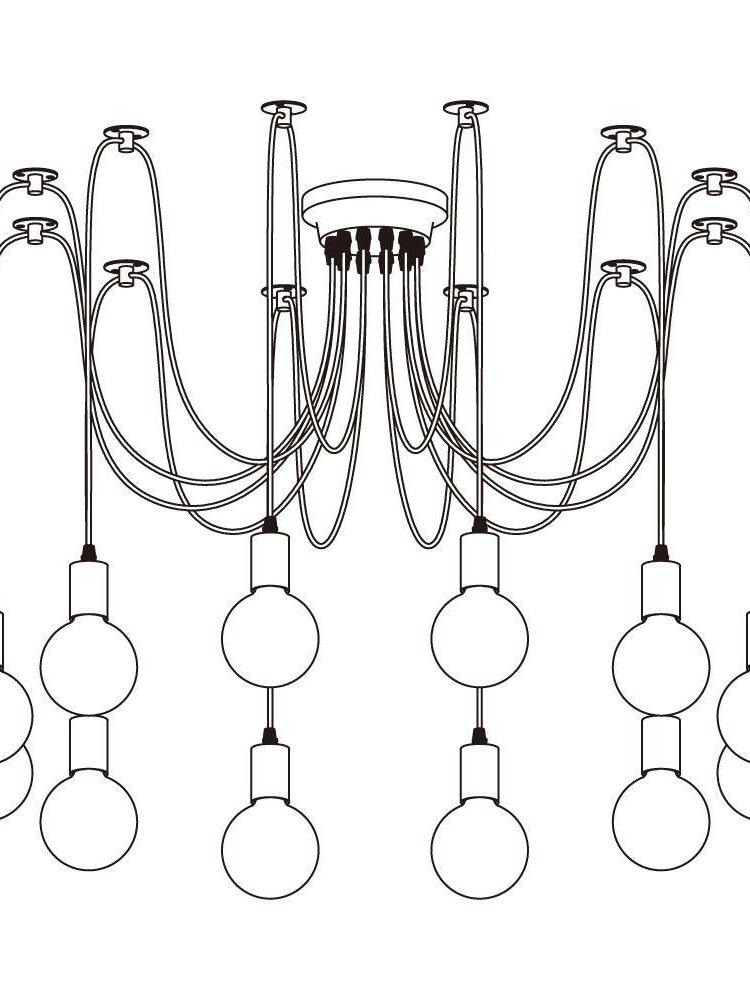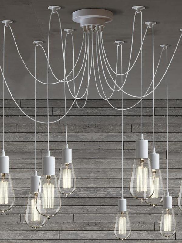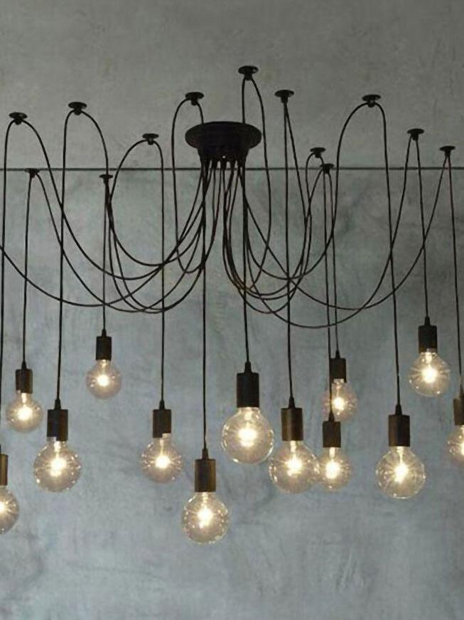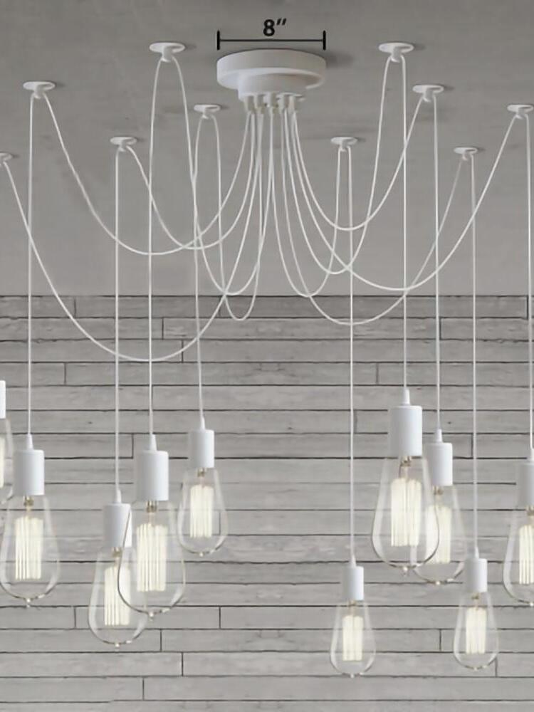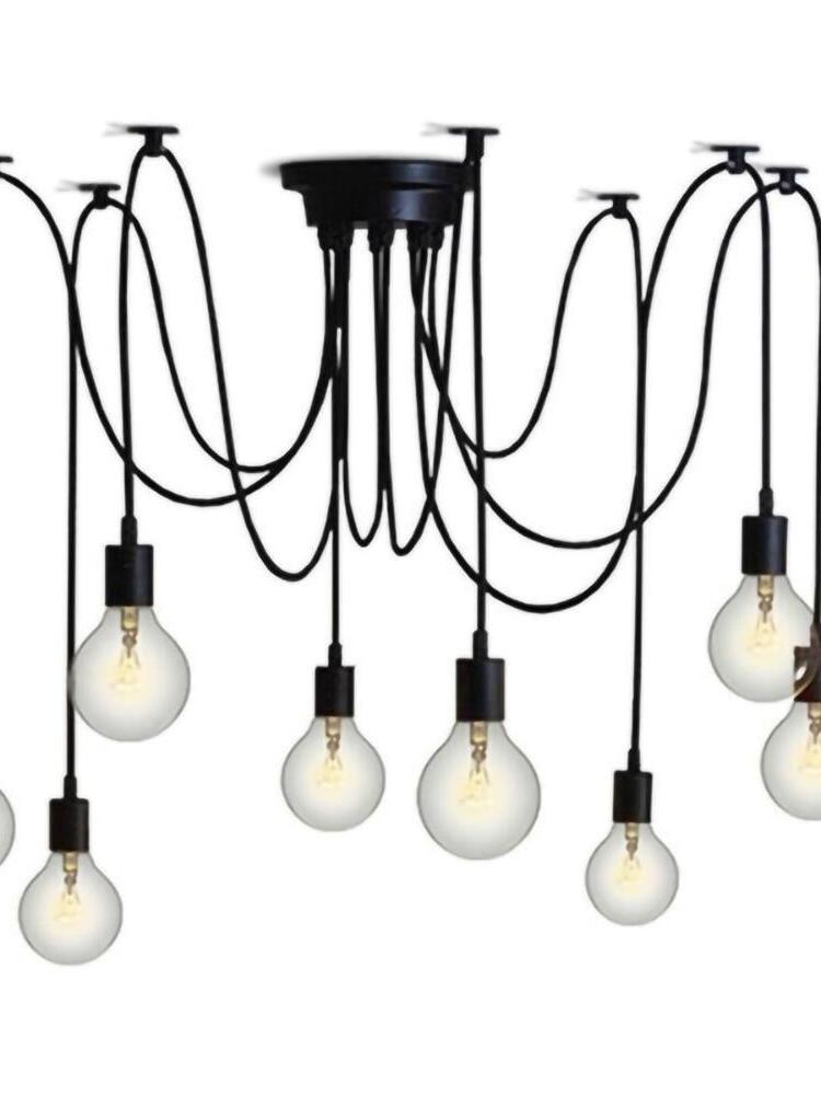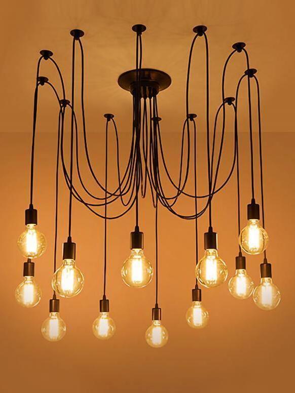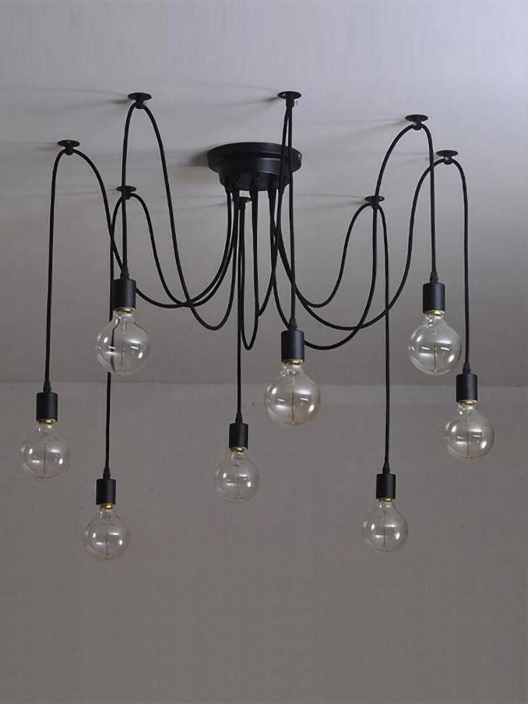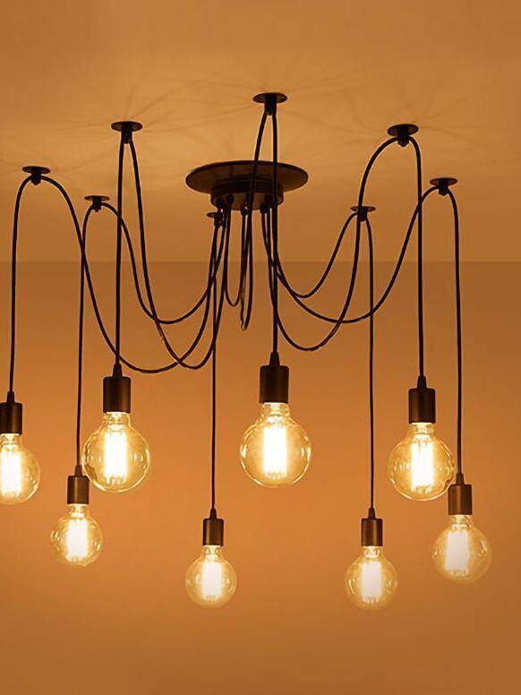 Decorate your room and show your modern and industrial atmosphere with this spider adjustable chandelier pendant lights. The use of different types and finishes of the bulb can dramatically alter the mood and atmosphere providing bright light in working areas and soft tones in areas of relaxation. Each wire is 79 inches, can adjusted droop length and modeling by DIY.