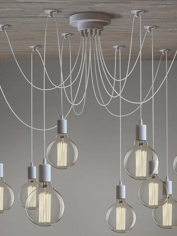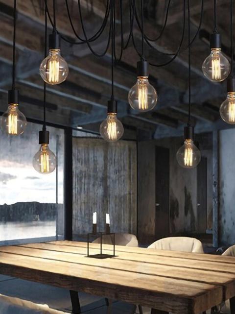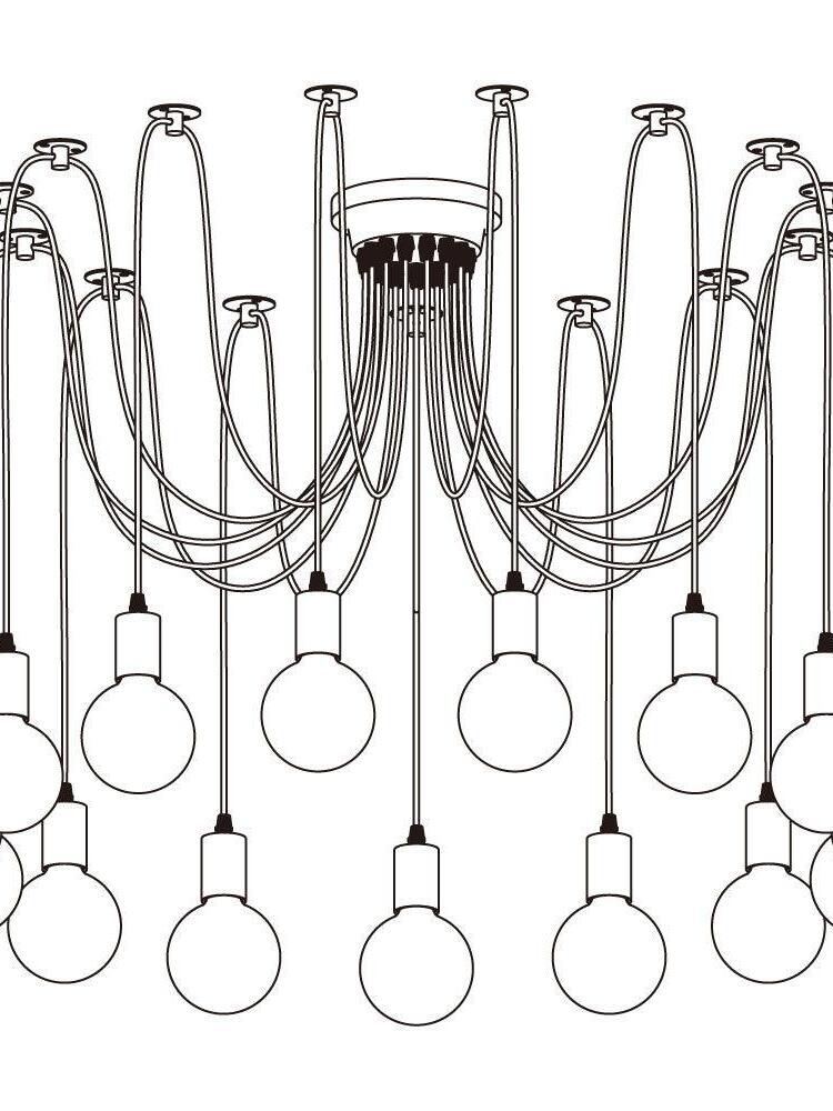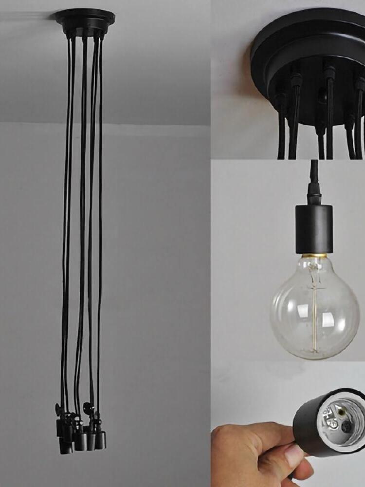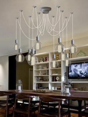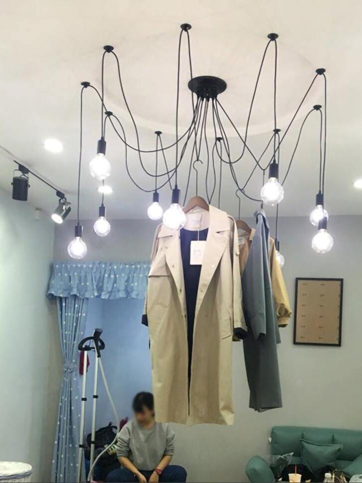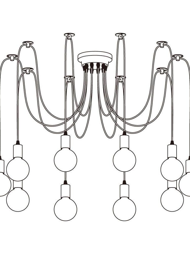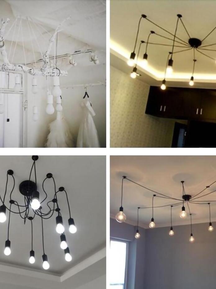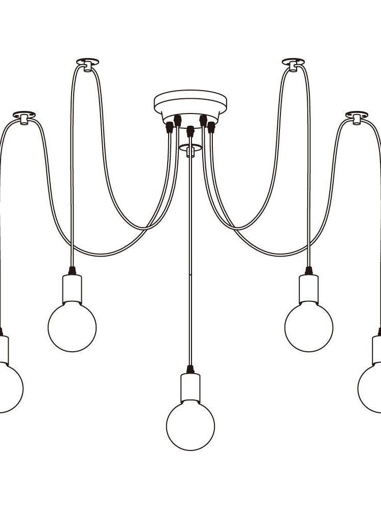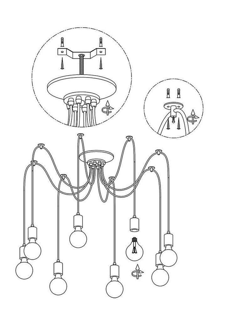 Decorate your room and show your modern and industrial atmosphere with this spider adjustable chandelier pendant lights. The use of different types and finishes of the bulb can dramatically alter the mood and atmosphere providing bright light in working areas and soft tones in areas of relaxation. Each wire is 79 inches, can adjusted droop length and modeling by DIY.