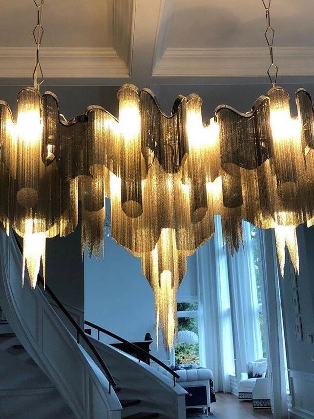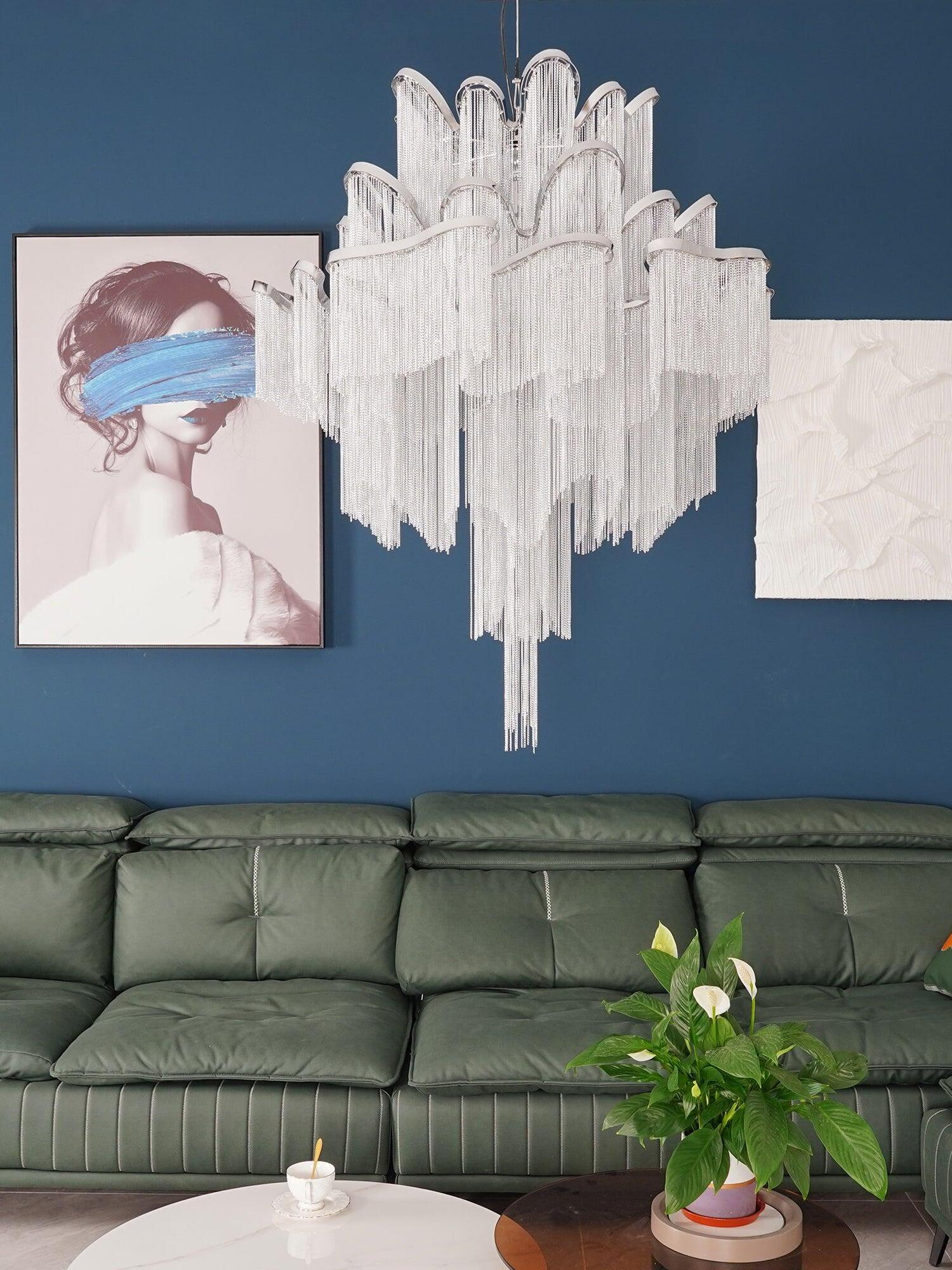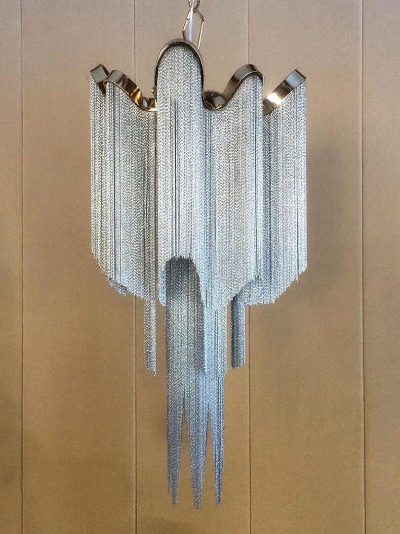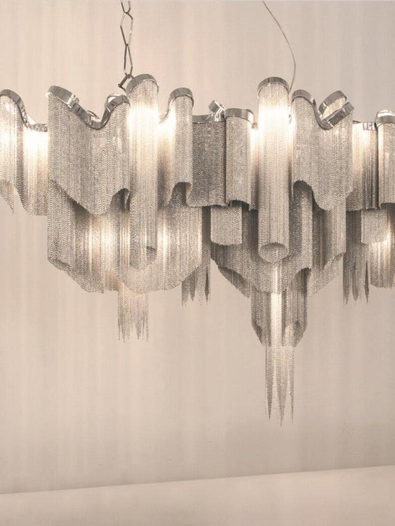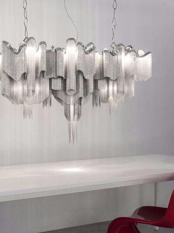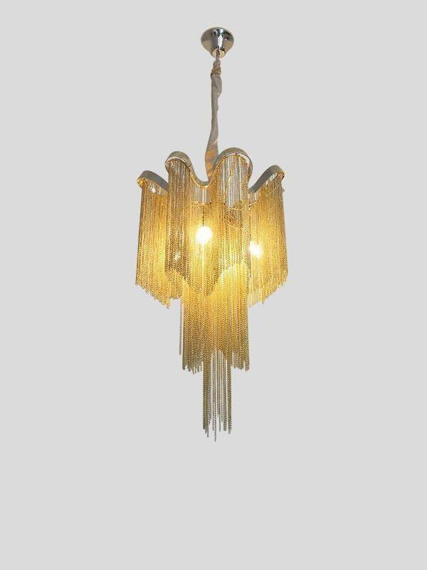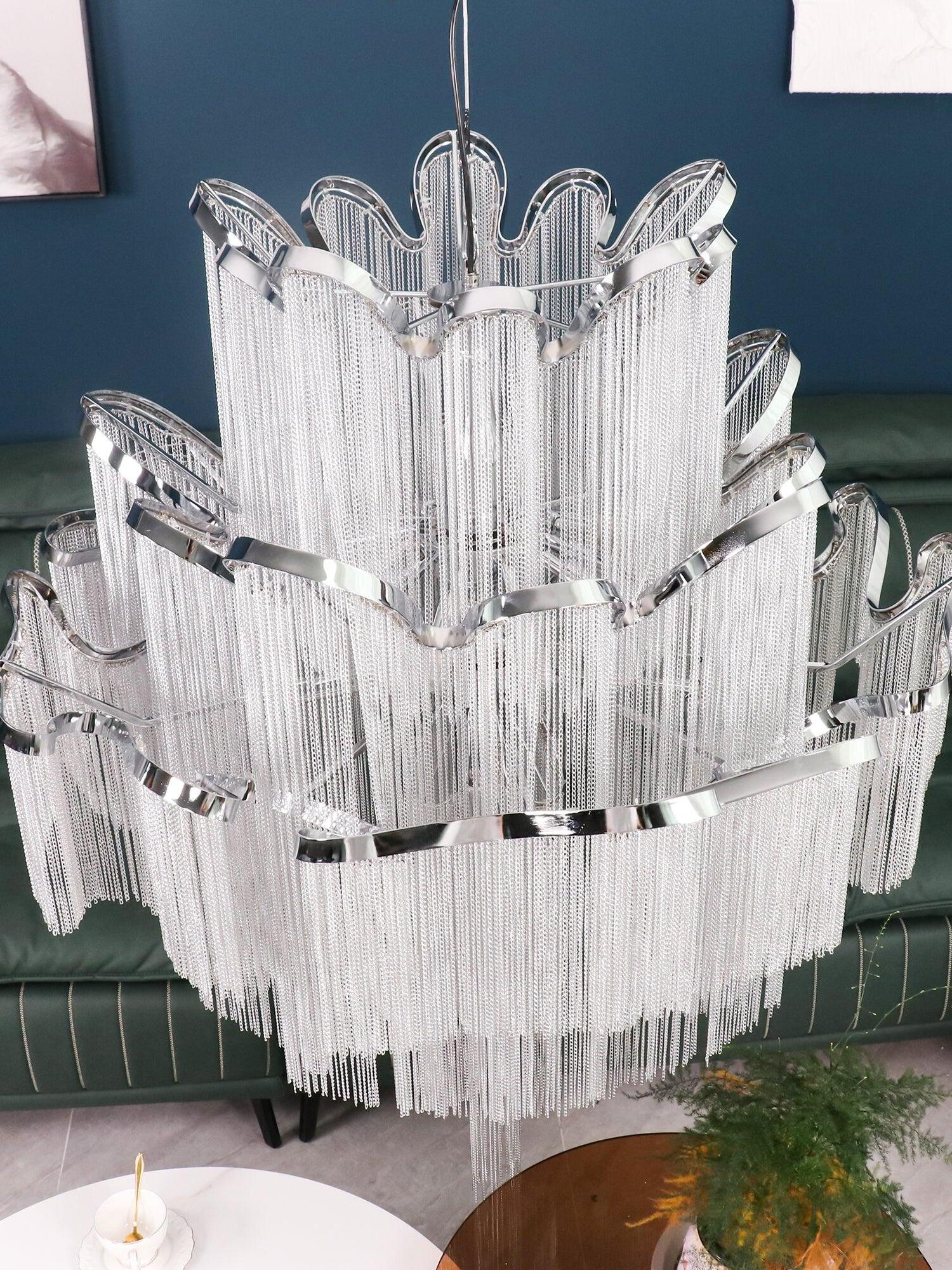 Dive into opulence with the Luxury Stream Tassel Chain Suspension. Its intricate design, adorned with cascading tassels and suspended from a chic chain, exudes a sense of grandeur. This statement piece elevates the ambiance of lavish dining halls, elegant ballrooms, or upscale lounges. The interplay of light adds a touch of magic, reflecting dazzling patterns across the room.