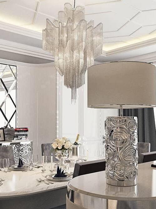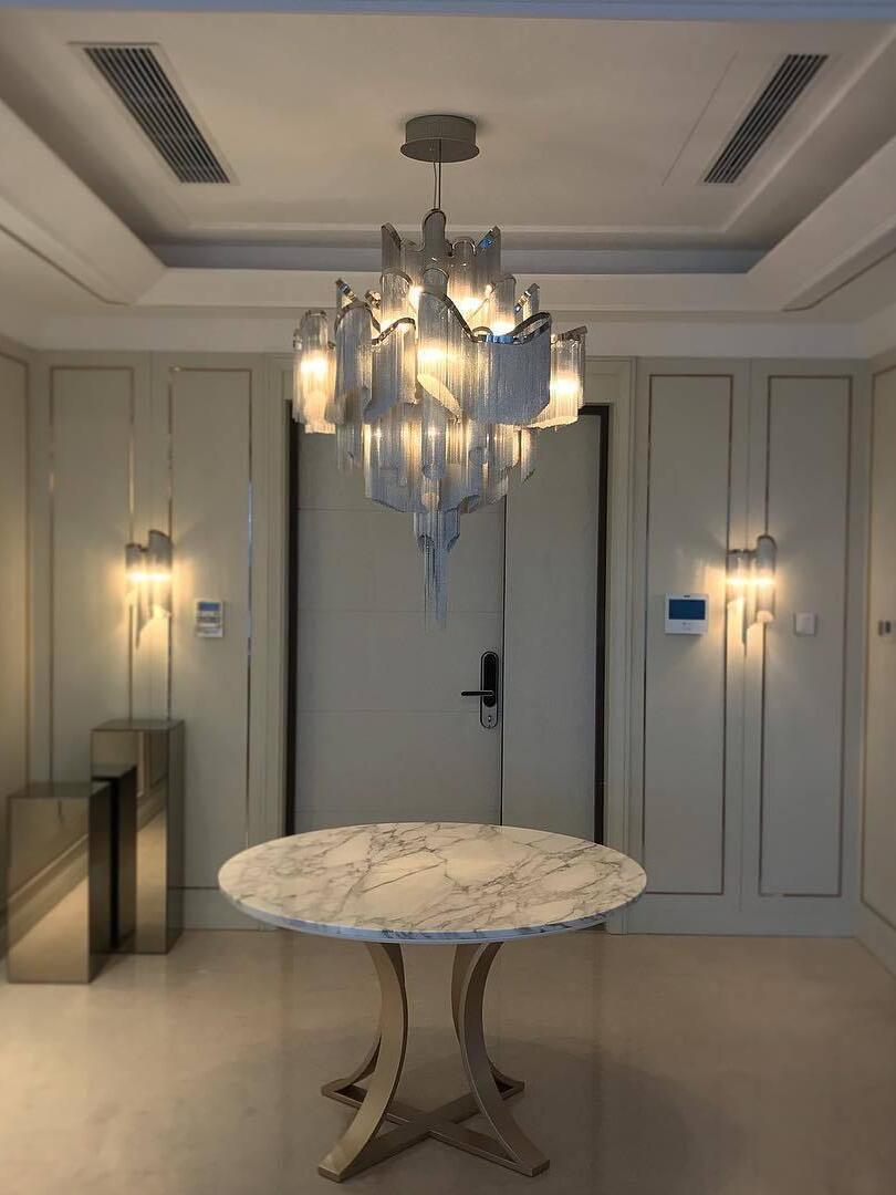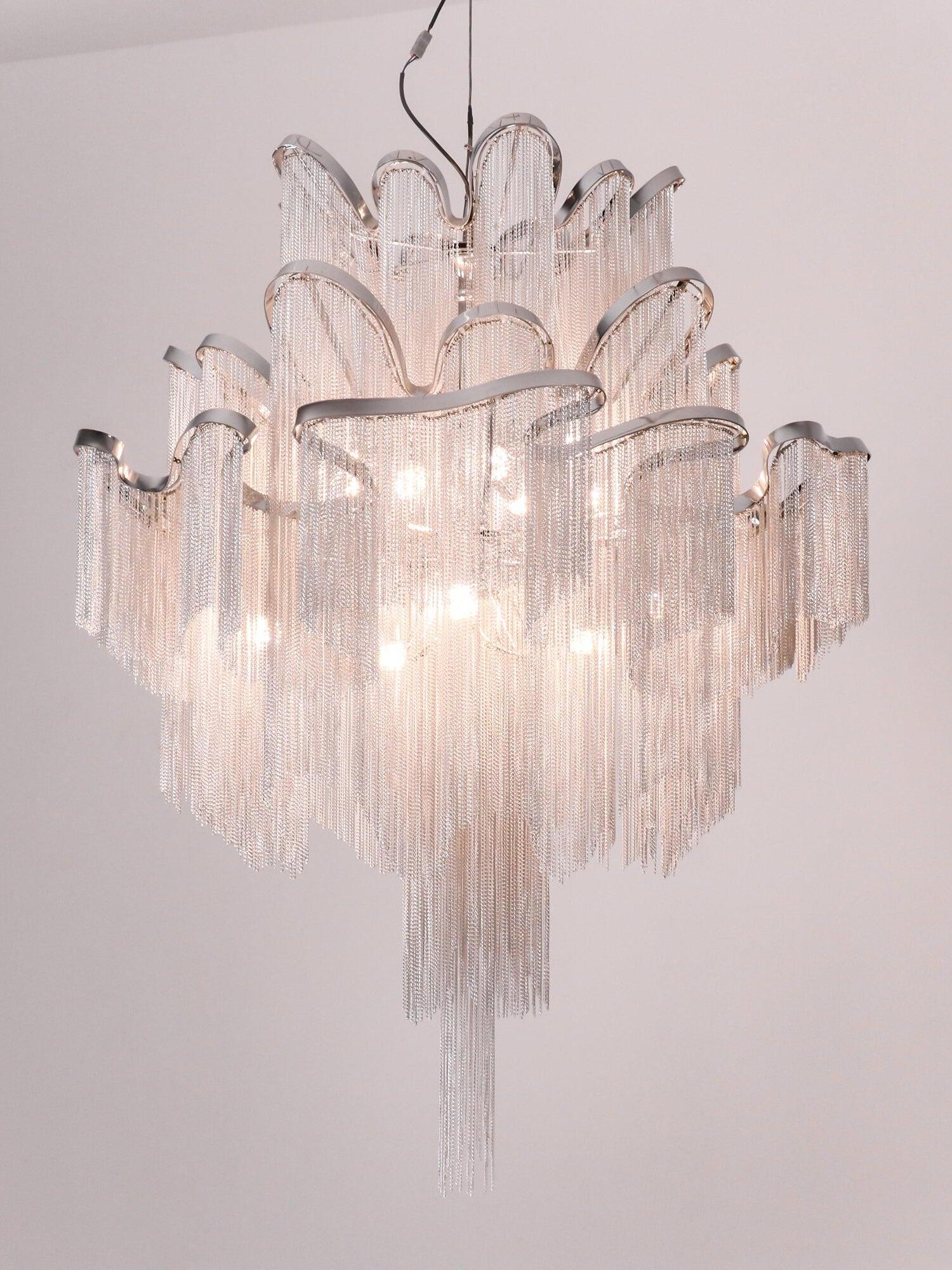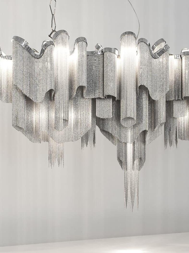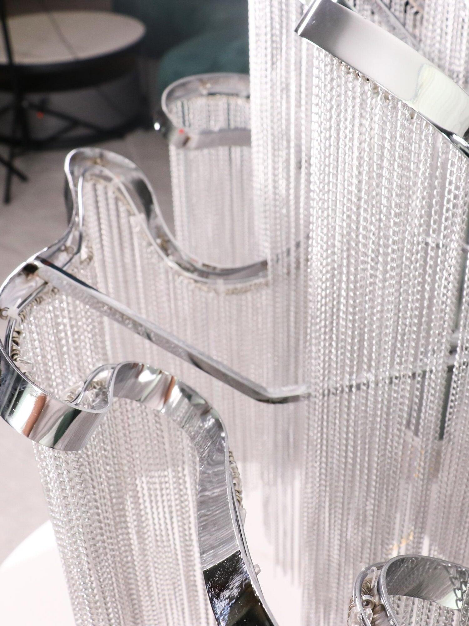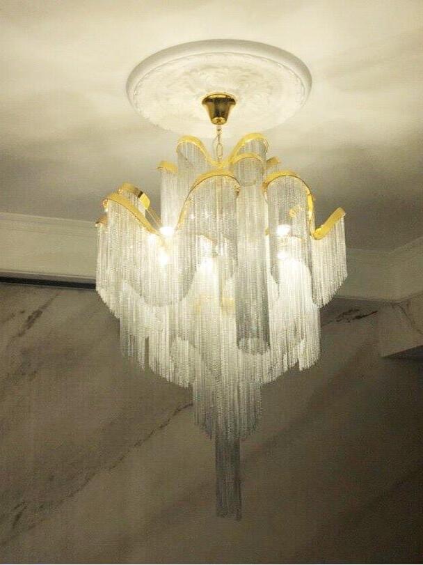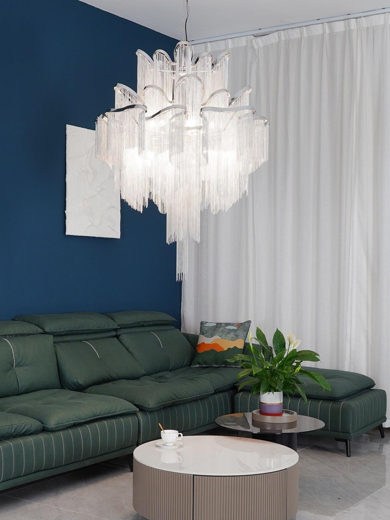 Dive into opulence with the Luxury Stream Tassel Chain Suspension. Its intricate design, adorned with cascading tassels and suspended from a chic chain, exudes a sense of grandeur. This statement piece elevates the ambiance of lavish dining halls, elegant ballrooms, or upscale lounges. The interplay of light adds a touch of magic, reflecting dazzling patterns across the room.
