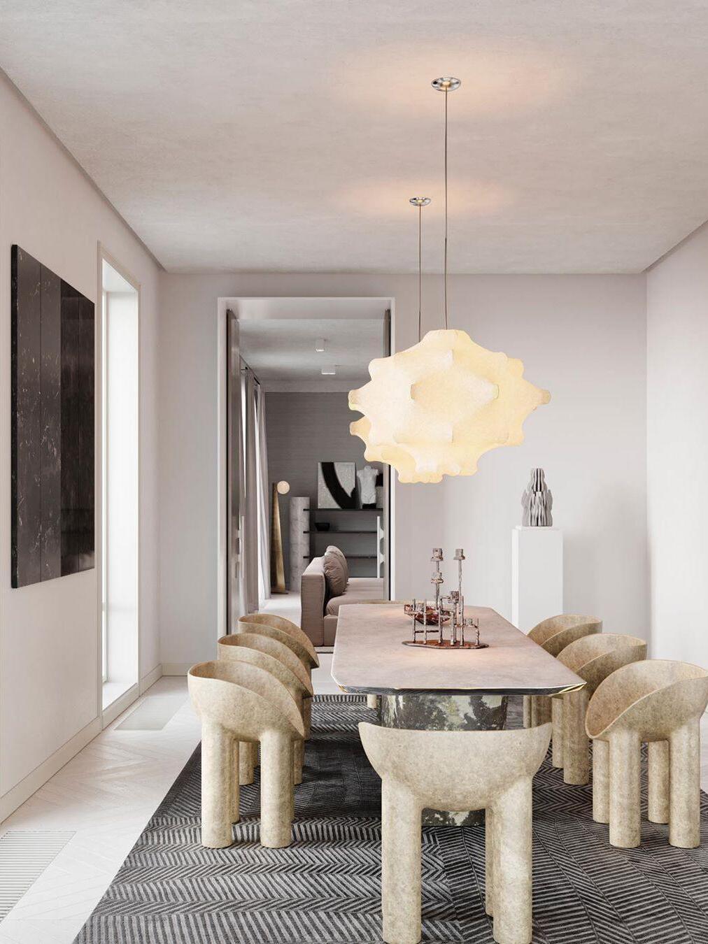 Make a wish: Named after the humble Dandelion, the Taraxacum pendant light astonishes with a gorgeously diffused blooming light. The white powder-coated internal steel structure is sprayed with a unique cocoon resin to create its stunning diffuser, which is finished with a transparent spray for protection.