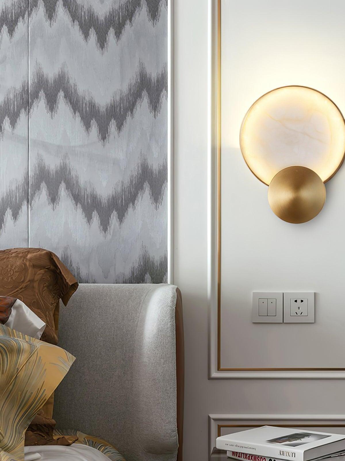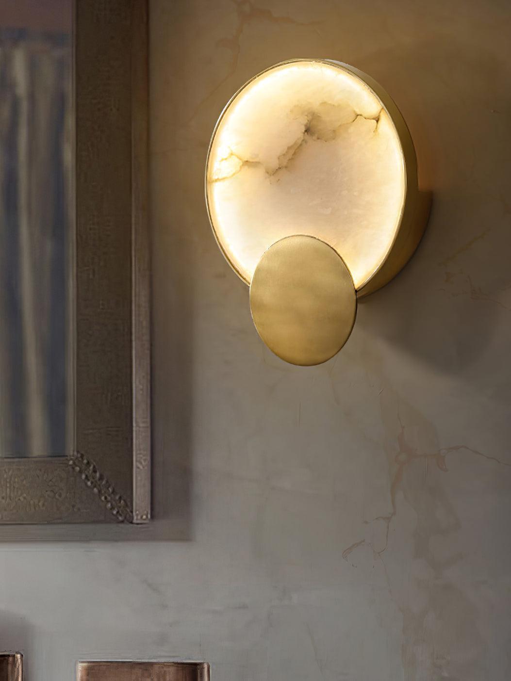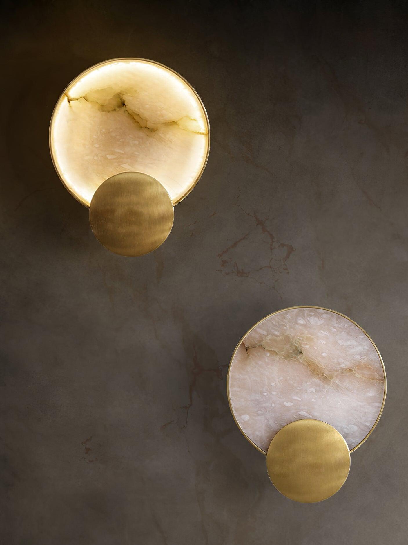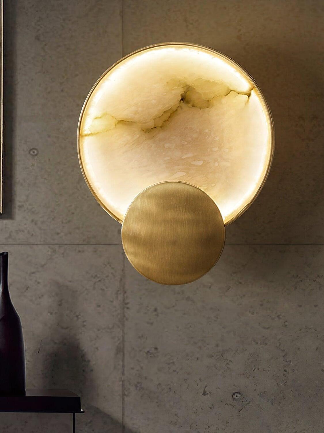 Terra Svet Wall lamp will become a stylish accent in a modern interior. Metal is used in the base of the lamp, Alabaster is used in the lampshade with the shape of a "Cylinder". The Gold color of the base and the white color of the ceiling complement each other.