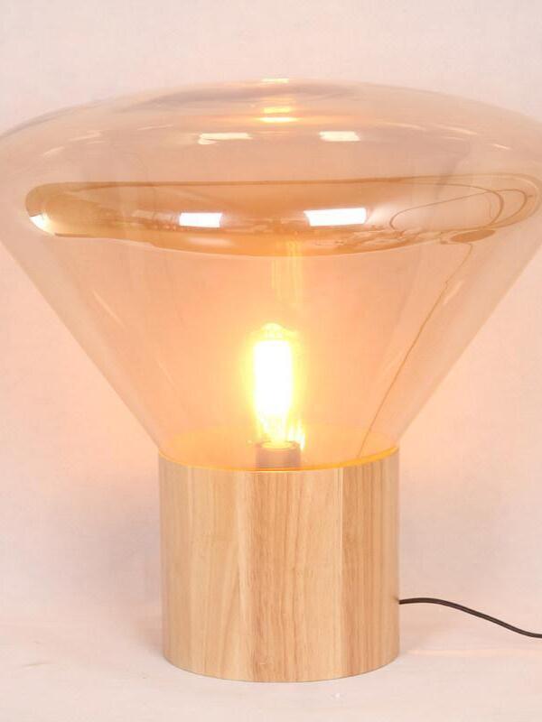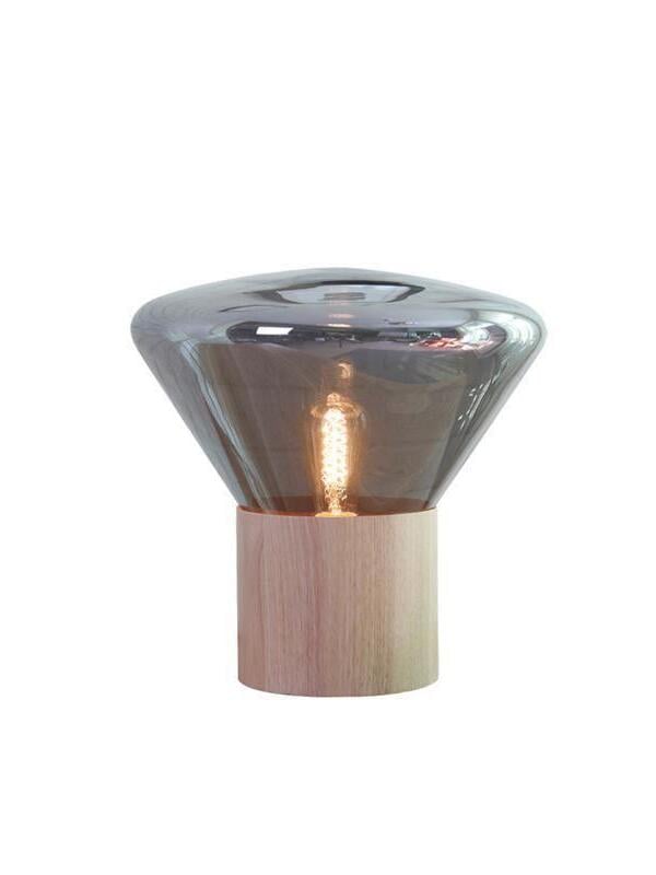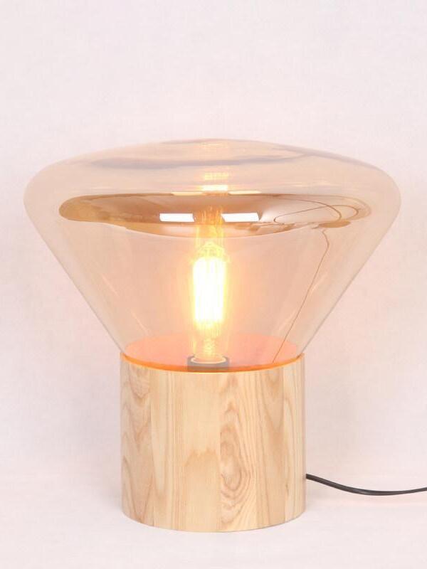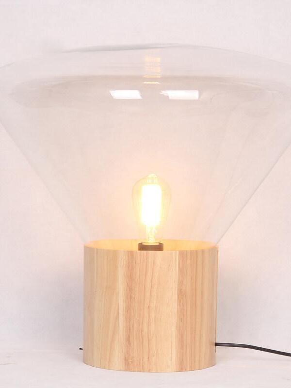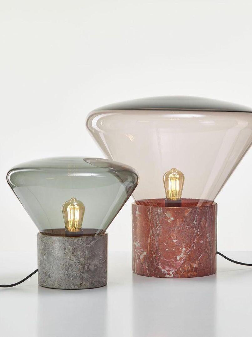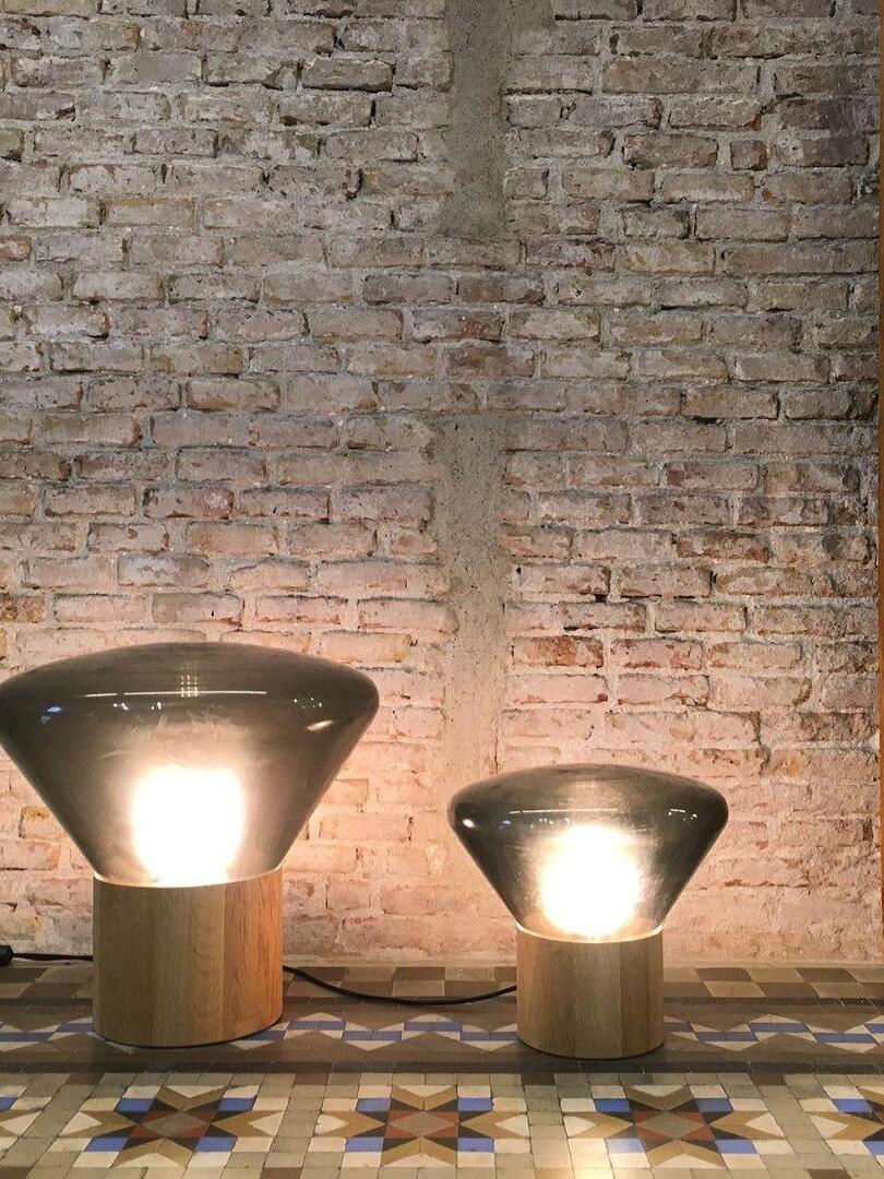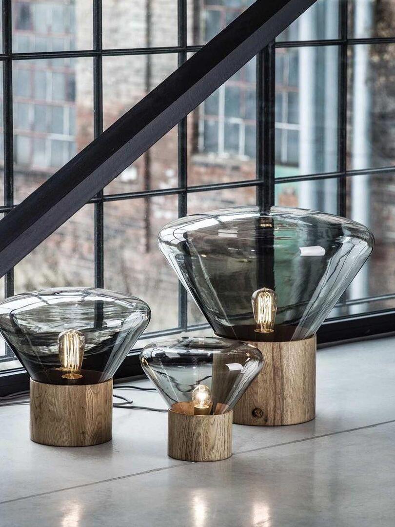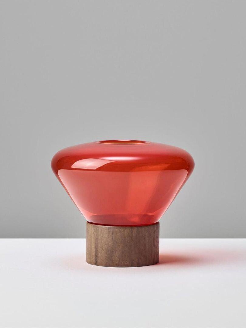 The lights, featuring a billowing glass shade set in a handcrafted wood base together with a naked filament bulb, breathe new life into any space and elicit a festive ambiance. The collection offers multiple shape and size variants as well as a broad palette of glass colors and woods.