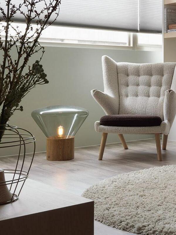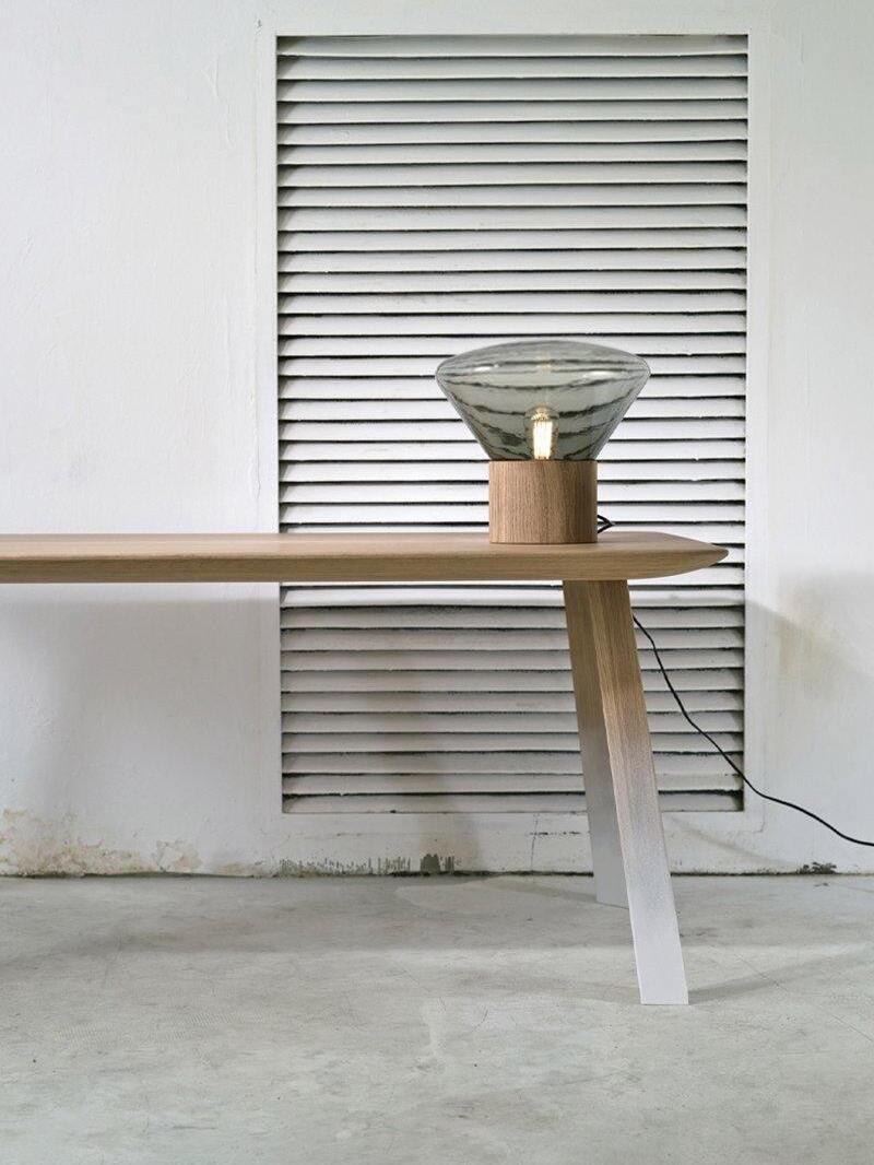 The timeless Muffins collection represents an extraordinary lighting experience. Since its market debut, it has taken on an iconic status. The sublimity of the design lies in the masterful combination of delicately contoured glass and solid wood.