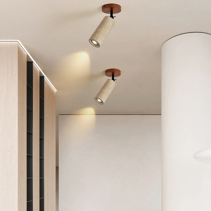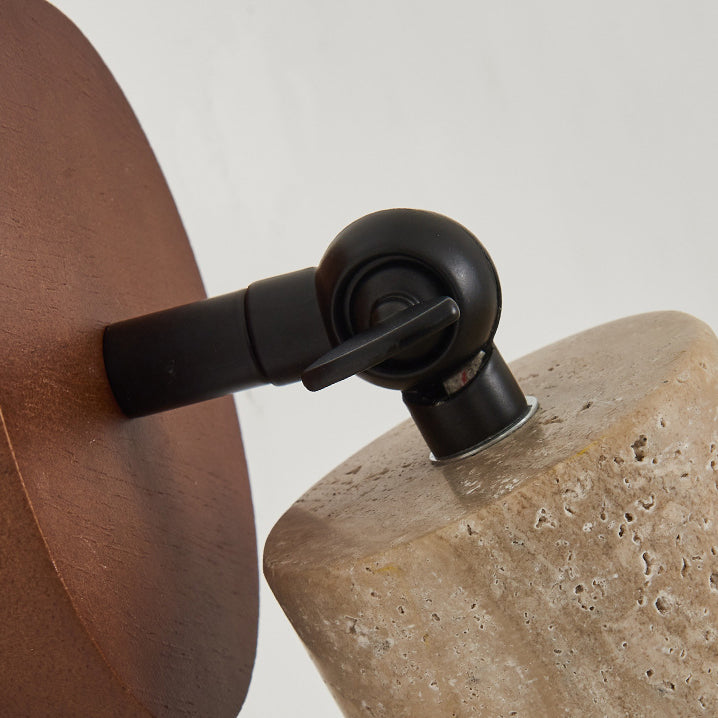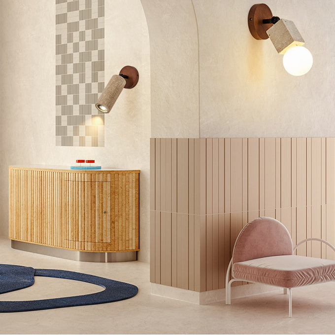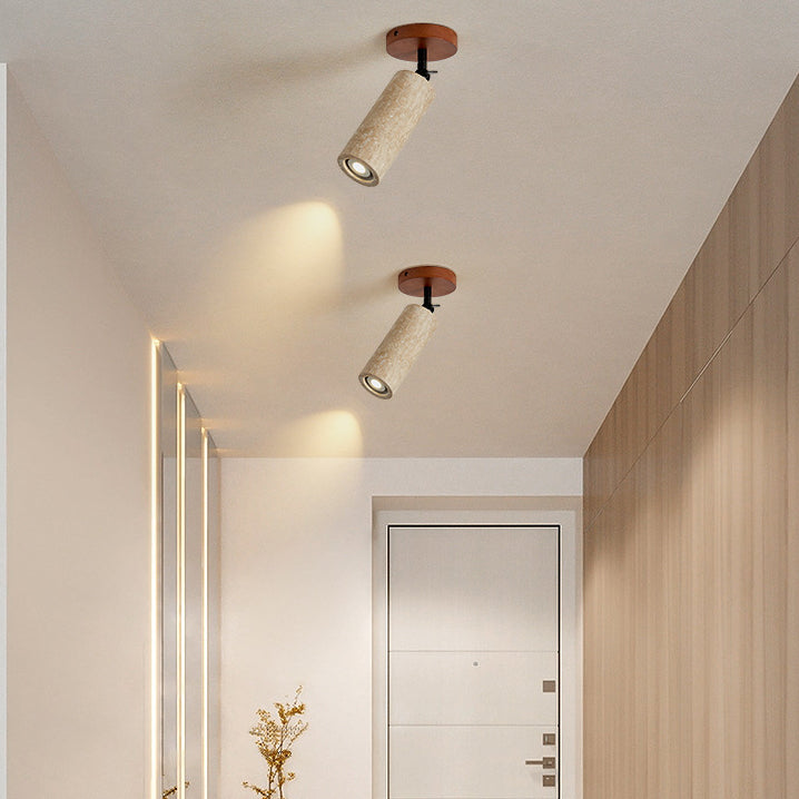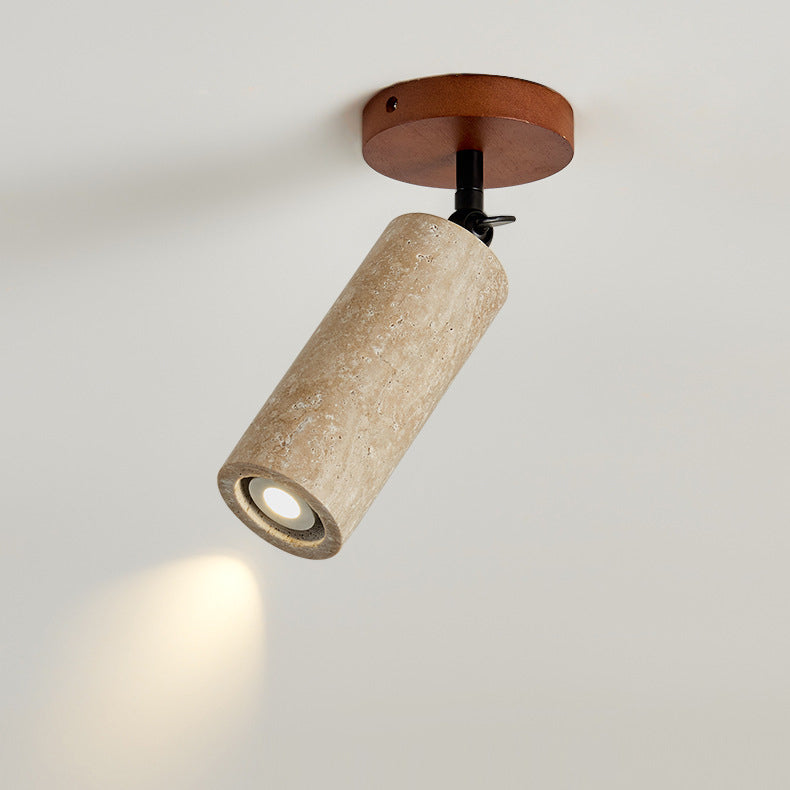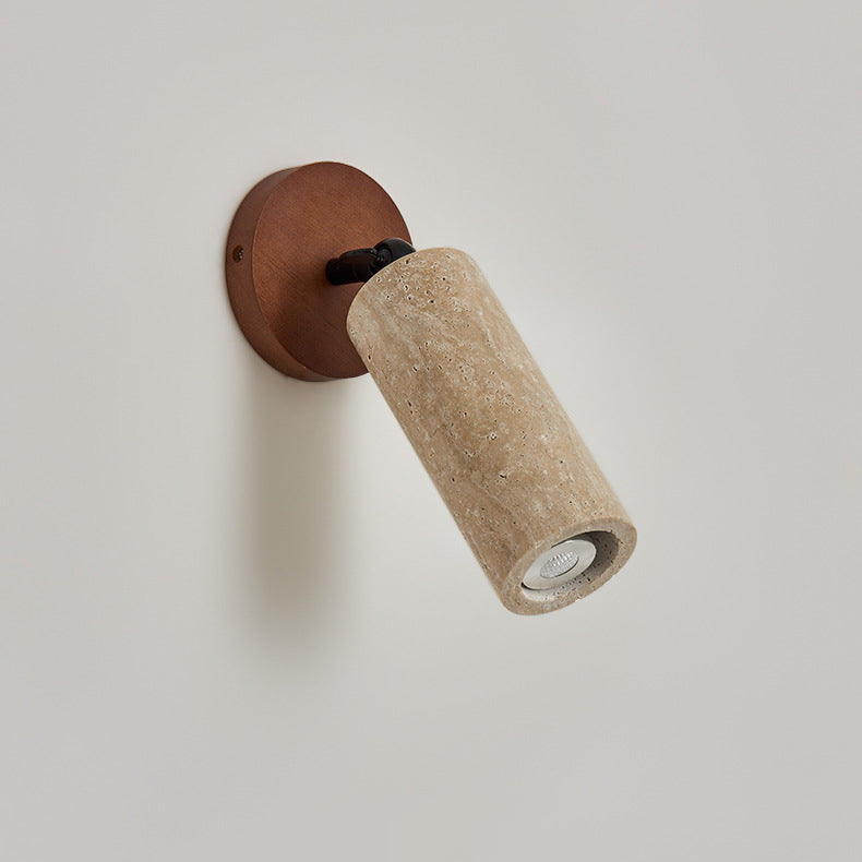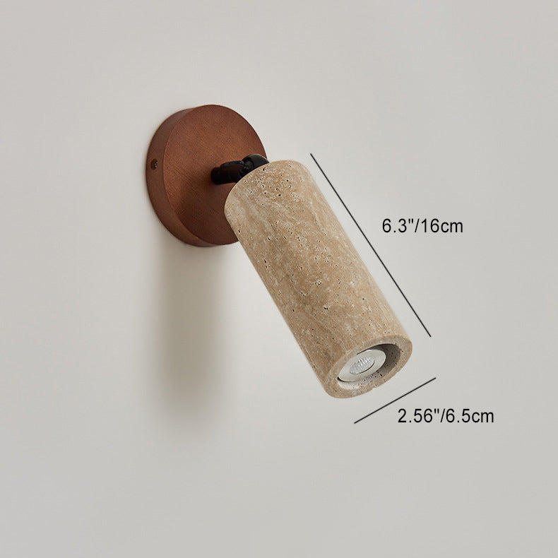 Traditional Japanese Yellow Travertine Cylindrical Spotlight 1-Light Wall Sconce Lamp For Bedroom