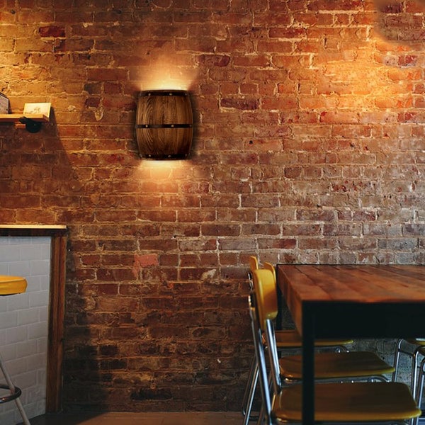 Traditional Rustic Wood Wine Barrel Design 1-Light Wall Sconce Lamp For Dining Room