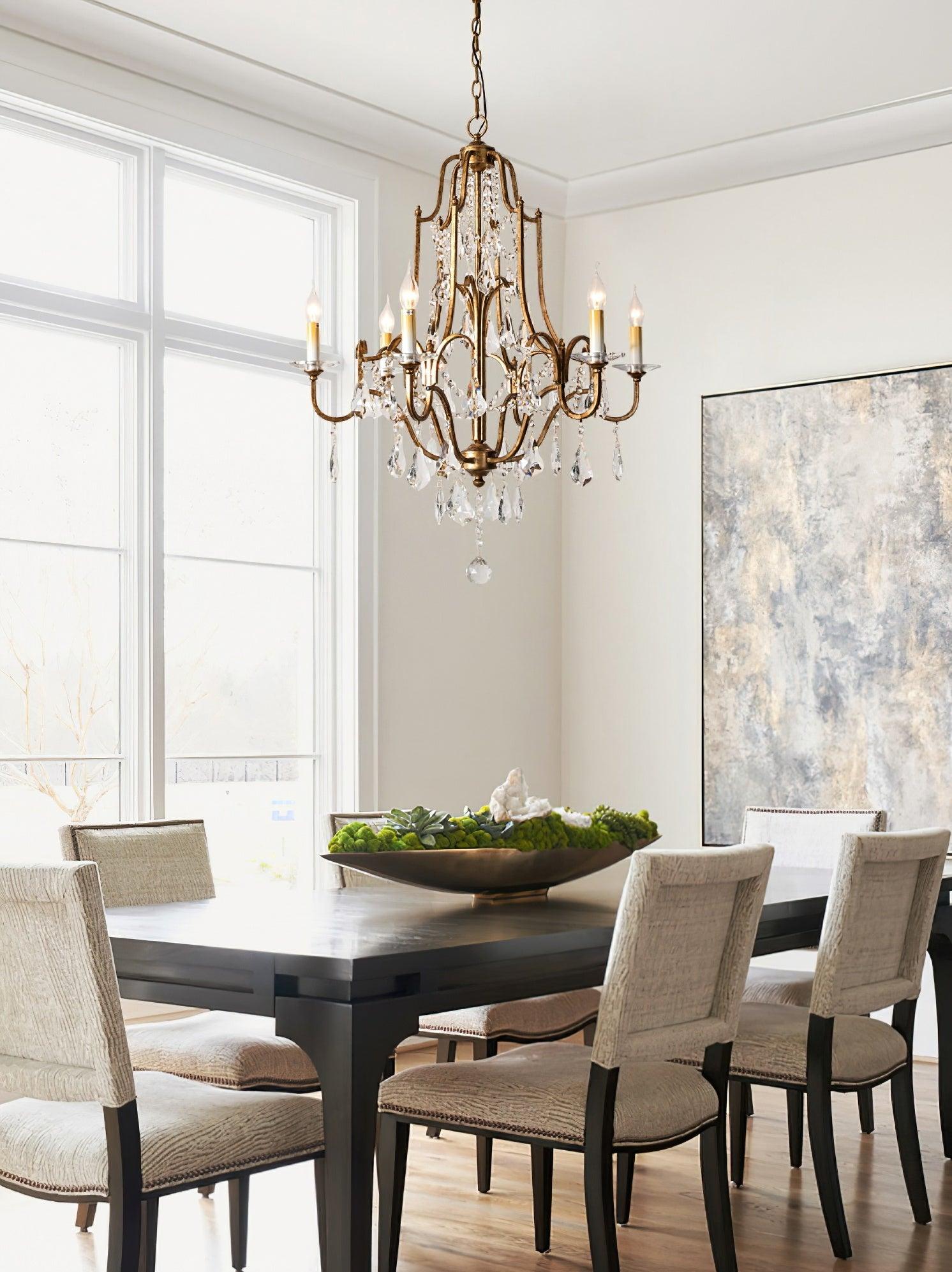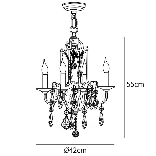 The Valentina lighting collection by our lights Lighting was named after the Latin word meaning “strong and brave,” and rightfully so. The willowy frame is finished in iron while Clear Polished glass crystals adorn each piece, adding even more elegance. Each candelabra style bulb sits in its own clear, crystal bobeche.