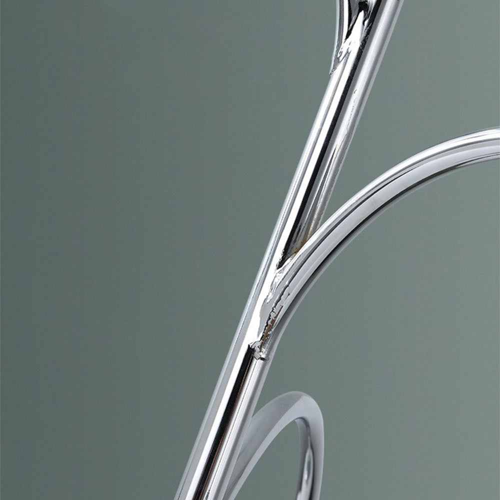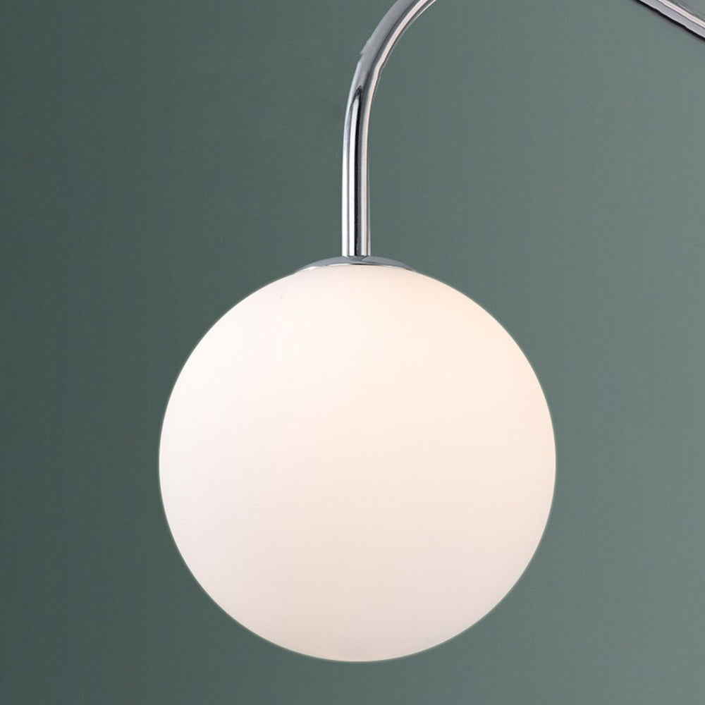 - The chrome-plated body shines with an electroplated polished metal surface, giving off a sparkling silver tone, filling your room with a mesmerizing glow. The bright matte white shade adds purity and tranquility to the interior. This exquisite play of colors creates a harmonious atmosphere and elevates your living space to the realm of elegant beauty.