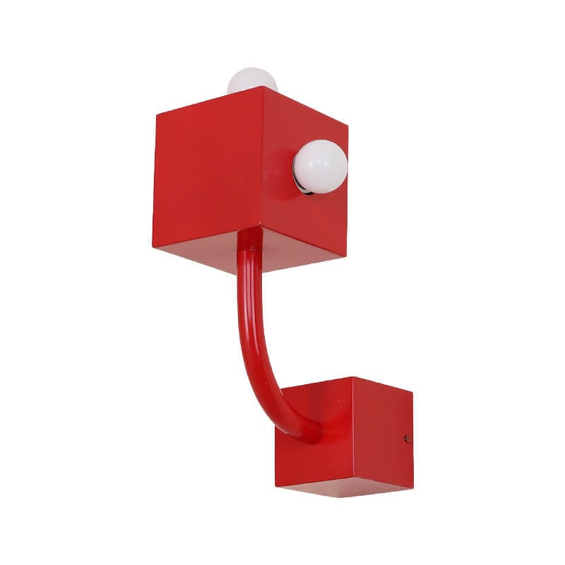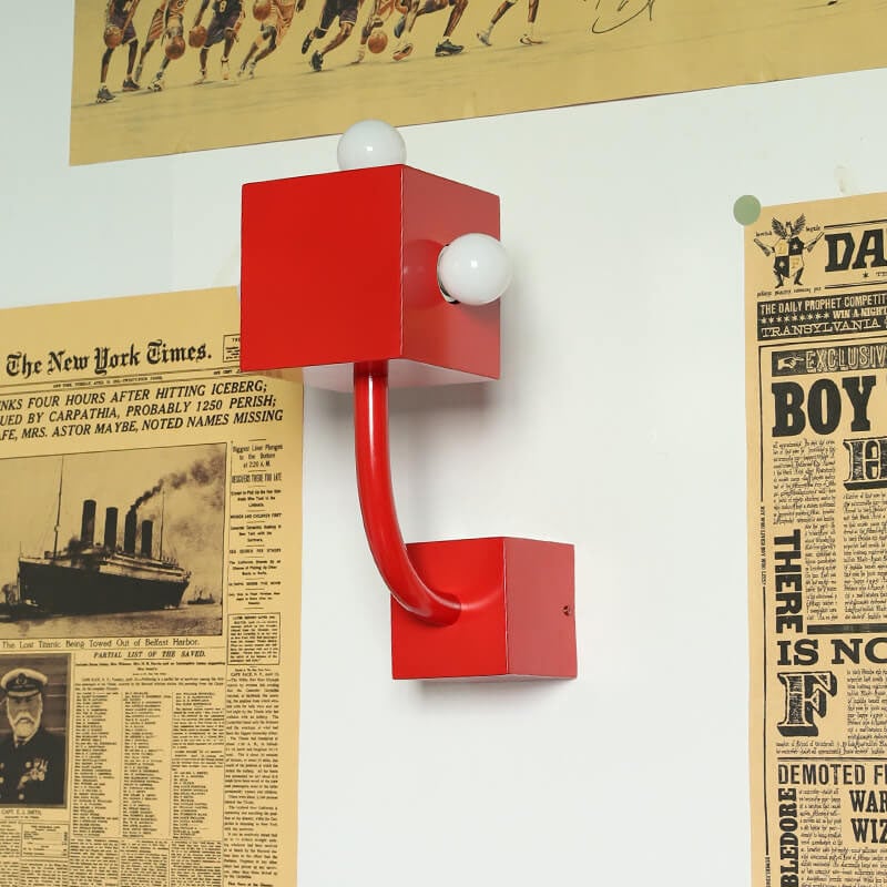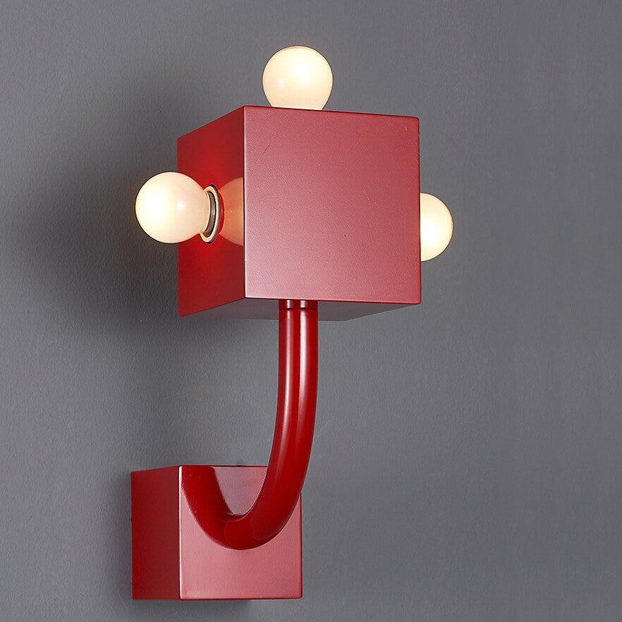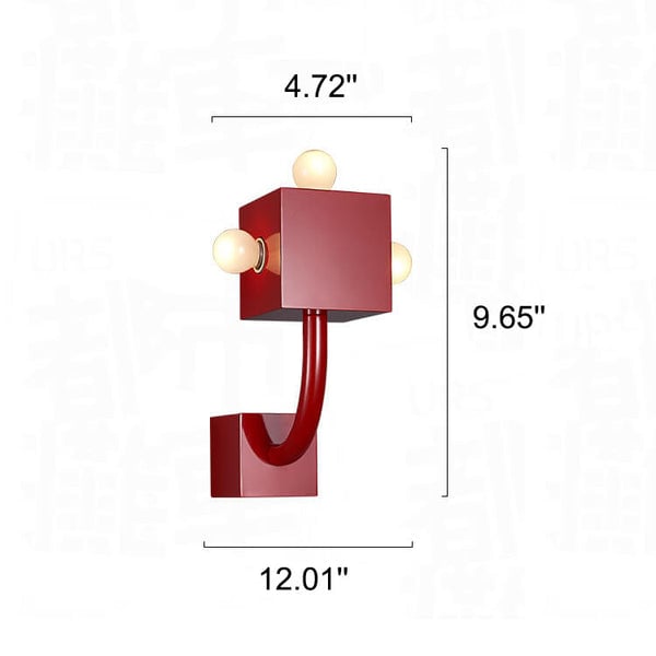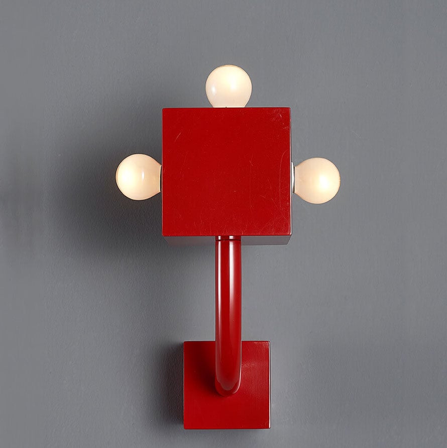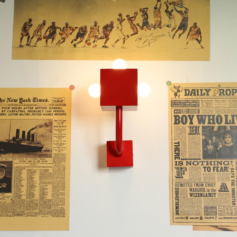 Vintage Red Square Iron 3-Light Wall Sconce Lamp
