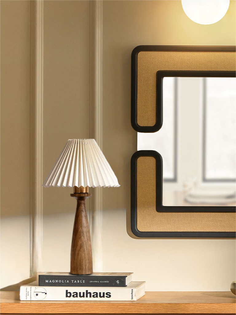 The solid wood base, natural texture and smooth line design exudes retro charm. This exquisite masterpiece embodies a perfect fusion of timeless and rustic charm. Adorned with a fabric pleated shade, it emanates a gentle and warm glow, casting a mesmerizing ambiance in any room. Embrace its unique character and elevate your decor with a dose of classic refinement. It can be used as an ornament to decorate a comfortable bedroom, or as a lamp to illuminate an exquisite study room.