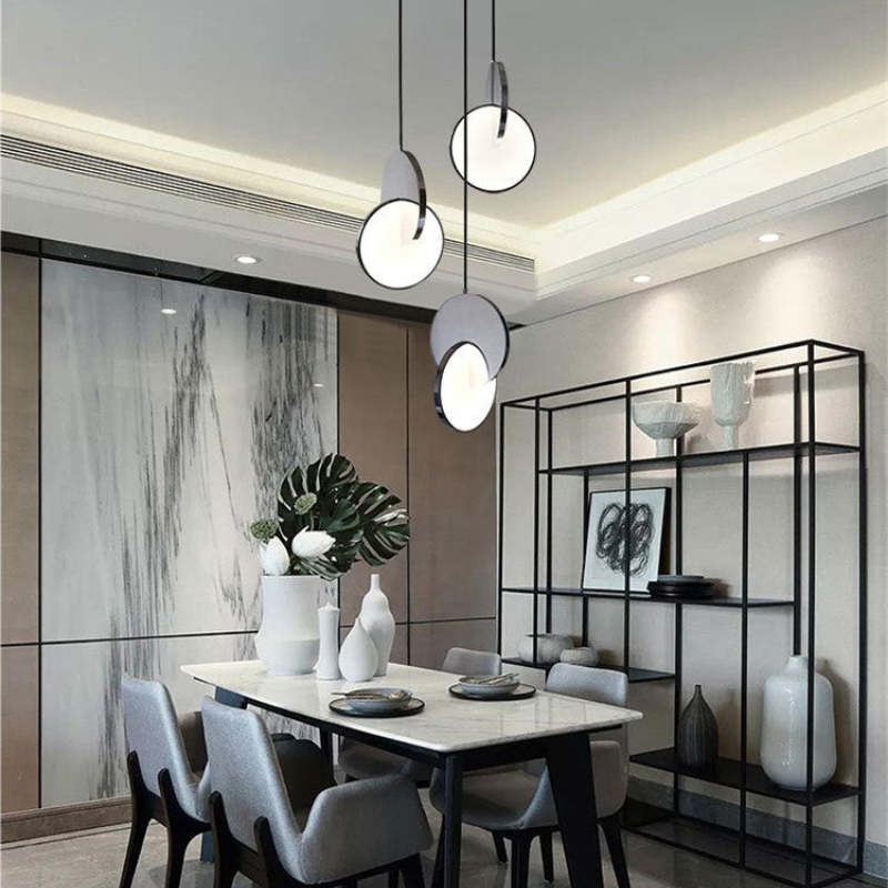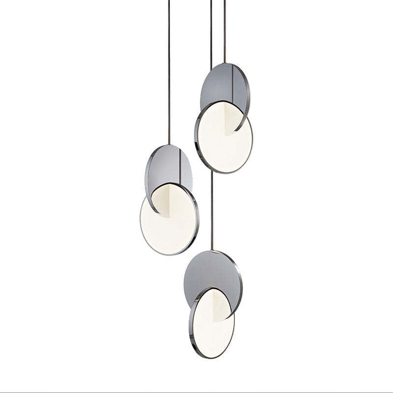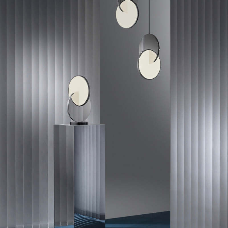 - The captivating shape of our chandelier is a masterpiece in itself. Its primary form, the opaque polished metal disk, mesmerizes like a shifting mirror, offering a dynamic visual feast. When in motion, this disk transforms into a sleek and alluring bar before your very eyes. This ever-changing shape adds an element of intrigue to your decor, making it an artistic expression that defies convention. The interplay of shapes within this chandelier ensures that it is as engaging when still as it is when in motion.