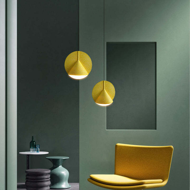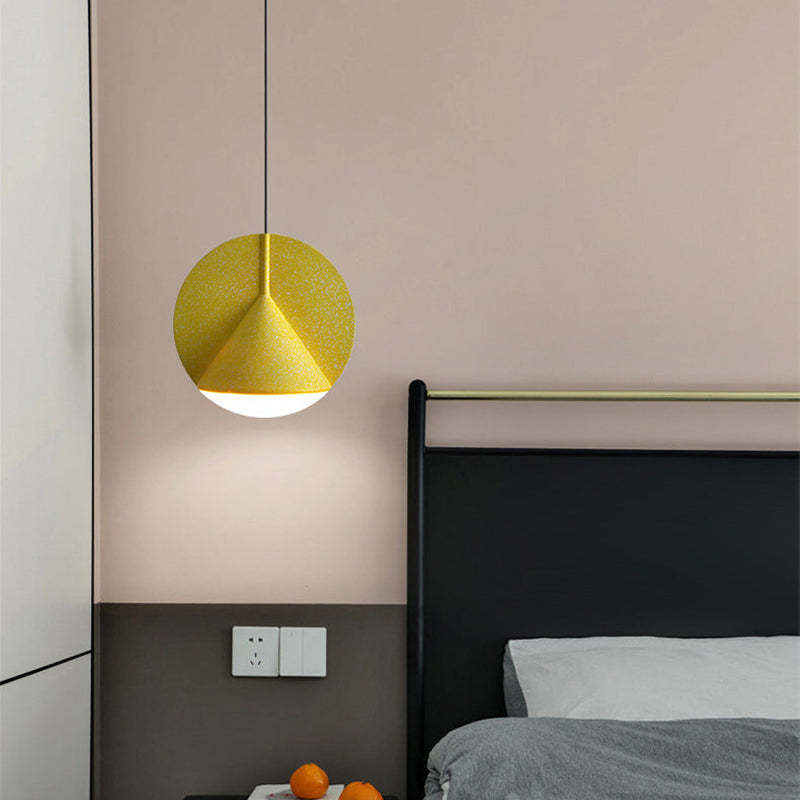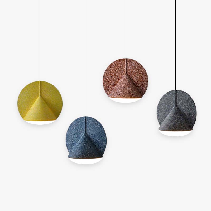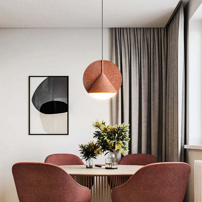 - The pendant lampshade features a captivating semi-circular design with a conical attachment, exuding a modern and artistic appeal. Its elegant curvature combines seamlessly with the conical element, creating a balanced and eye-catching silhouette. This thoughtfully designed shape not only enhances the lamp's functionality but also elevates its overall aesthetic, making it a statement piece that complements any interior decor.